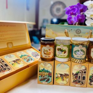 Hang Thuong – PhoHien Gourmet tự tin mang đến cho Quý khách hàng những set quà chất lượng nhất, xinh xắn, trọn vị và ngân sách phù hợp. Hộp quà được thiết kế đẹp mắt, là sự hòa quyện giữa truyền thống và hiện đại. Mang lời chúc bình an – may mắn – thịnh vượng đến cho mọi người.